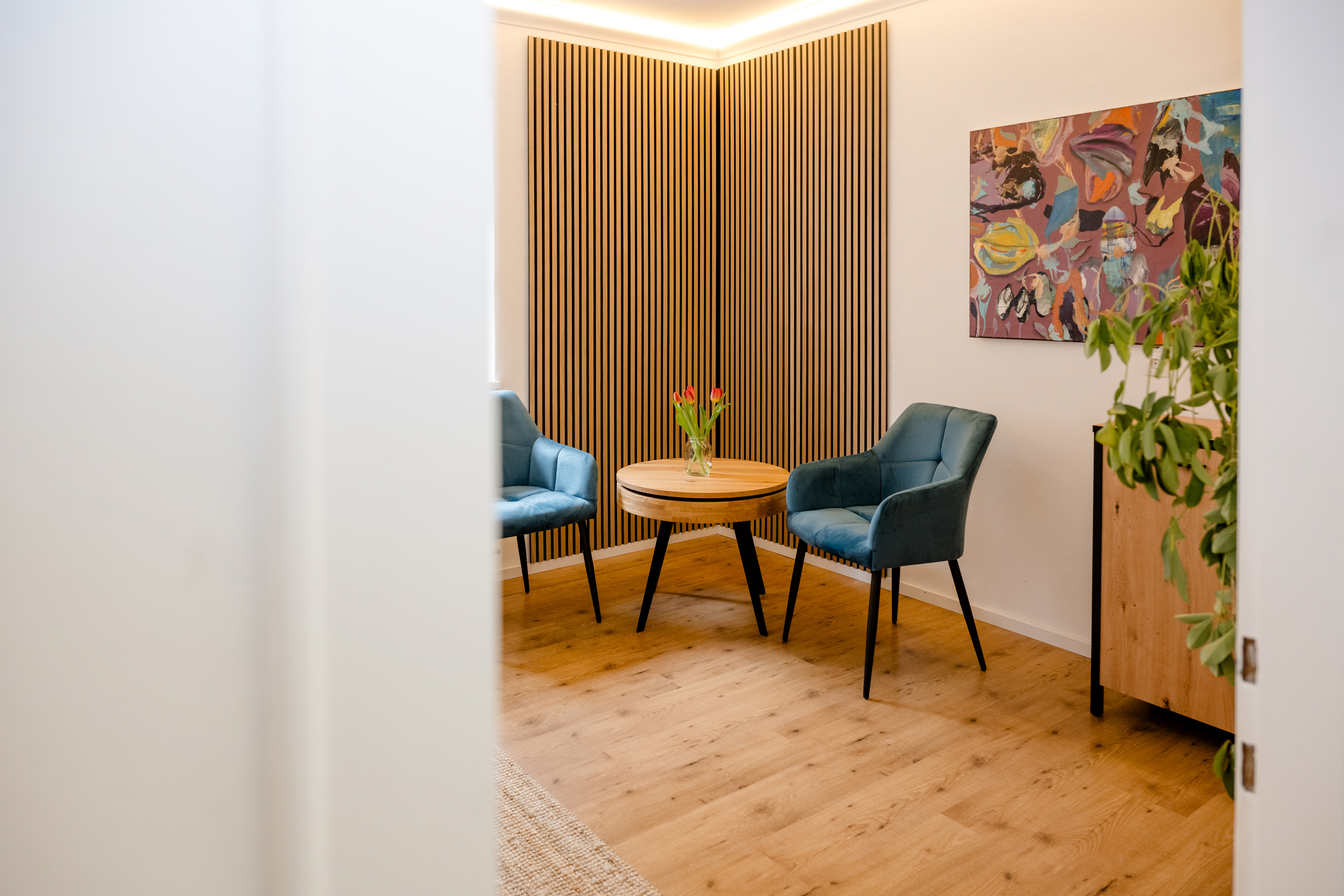 Die Räume sind voll ausgestattet mit elektrischer Behandlungsliege, Arbeitstisch, Wartebereich und Küche zur Mitbenutzung – ideal für Einzeltermine oder regelmäßige Nutzung. Professionelles Umfeld, ruhige Atmosphäre, flexible Buchung.